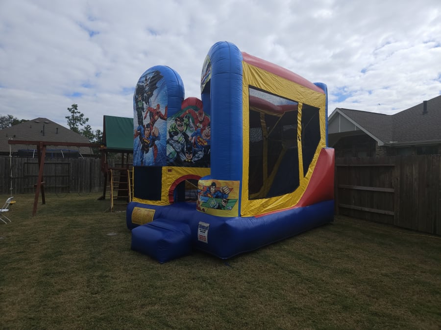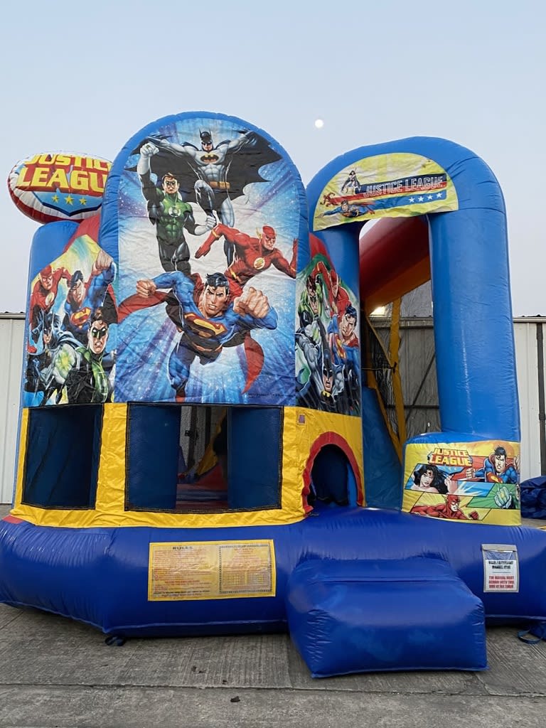 Are you looking for the ultimate entertainment for your next event? Look no further! Introducing the Justice League 4 in 1 combo, the perfect addition to any birthday parties or social events. Featuring your favorite superheroes – Superman, Batman, and Flash – this bounce house is guaranteed to be a hit among kids and parents alike.
