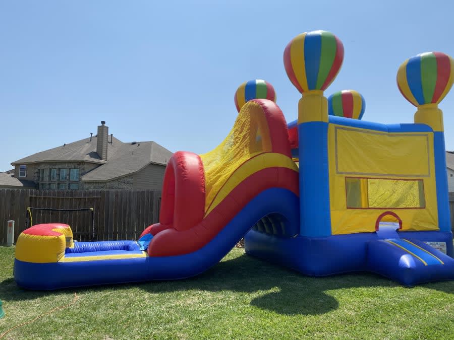Are you planning a birthday party or a social event in Atascocita, Humble, Kingwood, Porter, New Caney, Huffman, or Crosby? Look no further! Our Balloons Combo is the perfect solution to make your event a memorable one. This combo bouncy house is not just a regular inflatable; it's a complete entertainment package that includes a themed bouncy house and an exhilarating water slide. 🌈